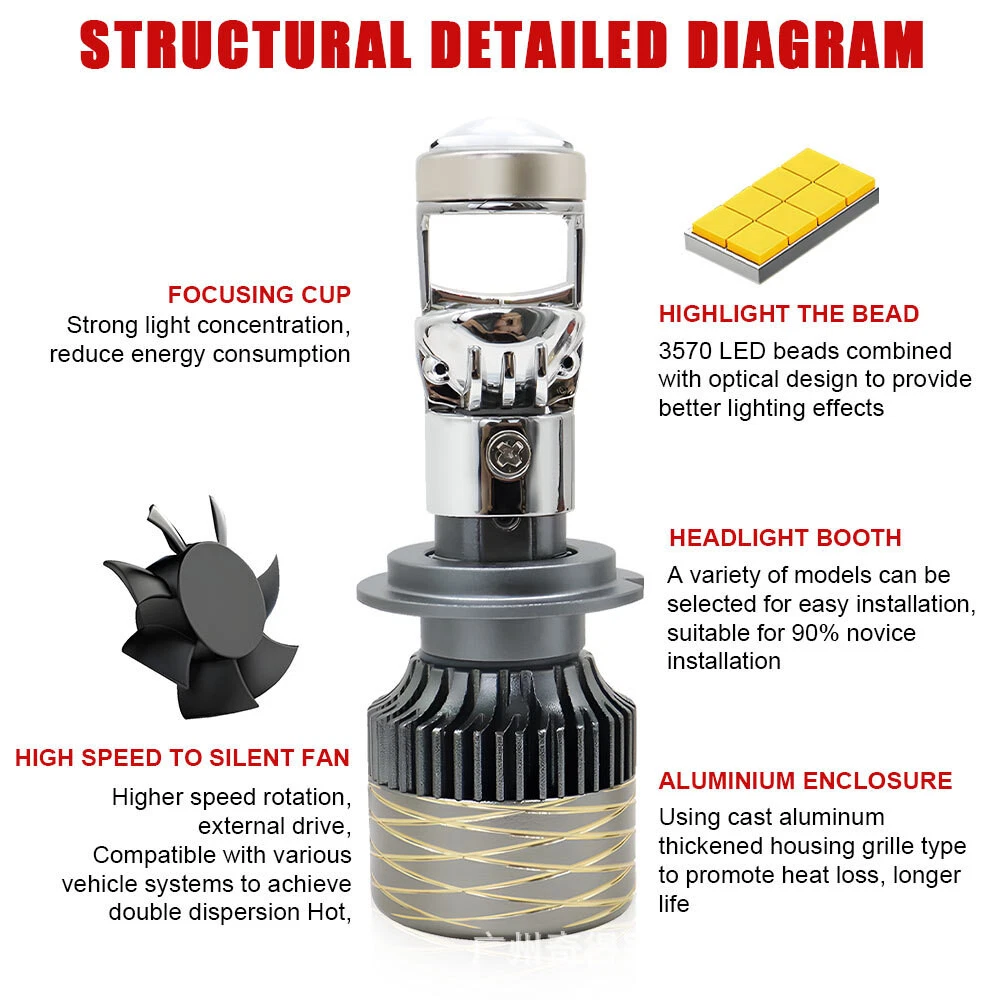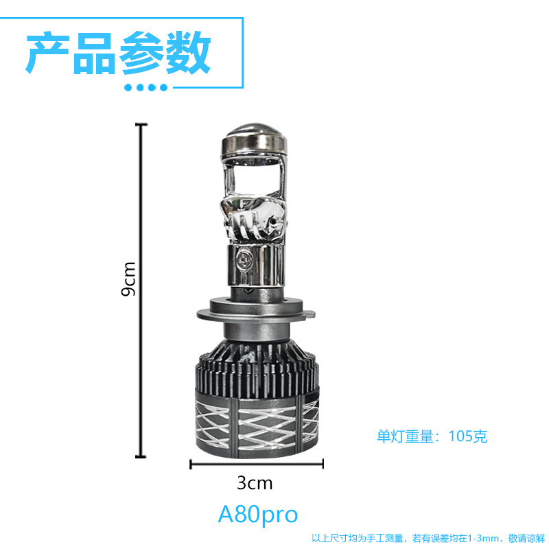 هدلایت لنزدار خودرو مدل A80 پایه H7 بسته 2 عددی